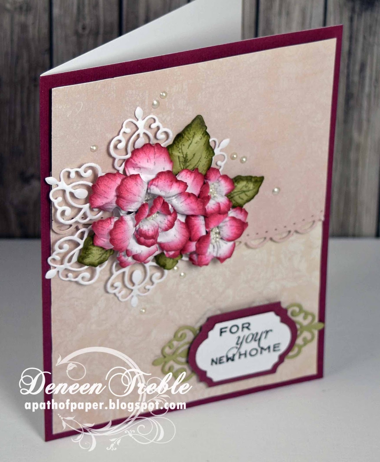 Recipe: HCD1-783 Border Essentials, HCPC-3651 Botanical Rose Stamp, HCD1-758 Botanical Rose Die, HCD1-747 Arianna Lace Die, HCDP1-275 Flowering Dogwood Paper Collection, Paperlicious Crystal Clear, CTMH Ink-Pixie, Blush & New England Ivy, Distress Ink Scattered Straw, Prills Heart of Gold, Lace, Acetate, Pearl Brad.